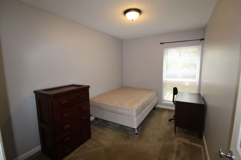 We have a 1 room in a 4 bed, 2 bath townhome available now. This townhome comes complete with a living room, wet bar, balcony, and 2 beds, and 1 bathroom on each floor. There is a nice-sized laundry room on the second floor and a kitchen off the entryway. Tenants in this unit are male and female.