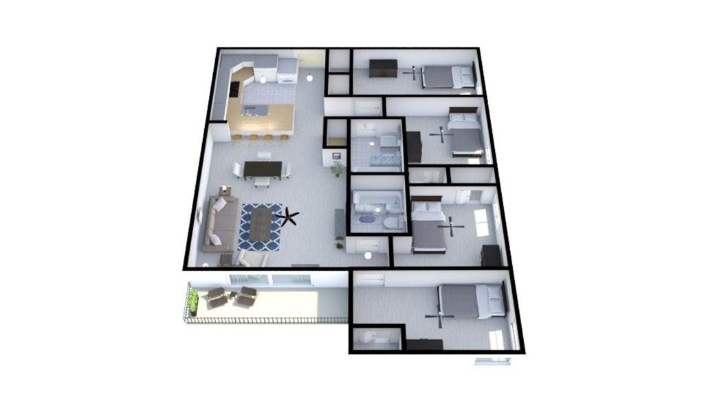 We have 1 furnished bedroom for rent in this 4-bedroom, 2 bath condo. This condo has an open living area that includes a kitchen, dining, and living room, and has a washer/dryer and balcony/patio.